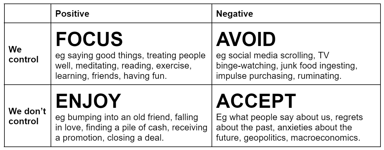 There’s a pearl of wisdom that goes a little like ‘focus on what you can control’.